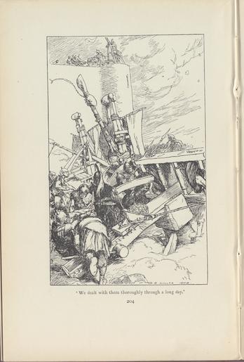 Keywords: Original Scan - H. R. Millar - Rudyard Kipling - Puck of Pook's Hill 14.tif H R Millar - Rudyard Kipling - Puck of Pook's Hill 14 jpg H R Millar's 14h illustration to the original edition of Rudyard Kipling's Puck of Pook's Hill from the chapter The Winged Hats 'We dealt with them thoroughly through a long day' 1906 Harold Robert Millar Puck of Pook's Hill First reprint October 1906 London Macmillan and Co Limited 1906 Harold Robert Millar 1869-1940 PD-old-70-1923 For other images from the book see Category Puck of Pook's Hill File H R Millar - Rudyard Kipling - Puck of Pook's Hill 14 jpg - Restoration JPEG File H R Millar - Rudyard Kipling - Puck of Pook's Hill 14 png - Restoration PNG File Original Scan - H R Millar - Rudyard Kipling - Puck of Pook's Hill 14 tif - Original scan TIFF DEFAULTSORT Puck of Pook's Hill 014T Puck of Pook's Hill Adam Cuerden's restorations |