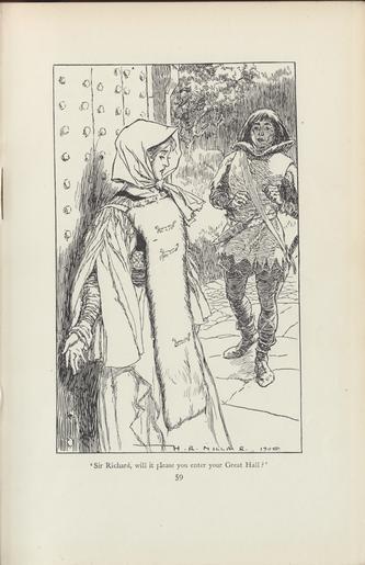 Keywords: Original Scan - H. R. Millar - Rudyard Kipling - Puck of Pook's Hill 5.tif File H R Millar - Rudyard Kiplong - Puck of Pook's Hill 5 jpg H R Millar's 5th illustration to the original edition of Rudyard Kipling's Puck of Pook's Hill from the chapter Young Men at the Manor 'Sir Richard will it please you enter your Great Hall ' Note While not as far from right angles as 4 in the set this still isn't very rectangular It would be misleading to fix 1906 Harold Robert Millar Puck of Pook's Hill First reprint October 1906 London Macmillan and Co Limited 1906 Harold Robert Millar 1869-1940 PD-old-70-1923 For other images from the book see Category Puck of Pook's Hill File H R Millar - Rudyard Kipling - Puck of Pook's Hill 5 jpg - Restoration JPEG File H R Millar - Rudyard Kipling - Puck of Pook's Hill 5 png - Restoration PNG File Original Scan - H R Millar - Rudyard Kipling - Puck of Pook's Hill 5 tif - Original scan TIFF DEFAULTSORT Puck of Pook's Hill 005T Puck of Pook's Hill Adam Cuerden's restorations |