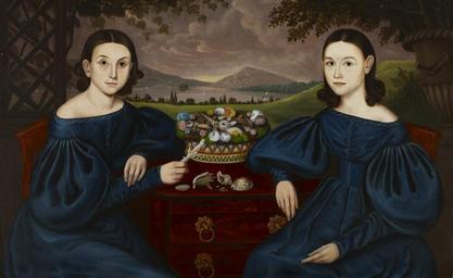Keywords: Orlando Hand Bears - Ann and Eliza Dusenberry - 2008.84 - Minneapolis Institute of Arts.jpg two seated women in foreground looking forward; both have dark brown hair parted at the center and ringlets; both are wearing matching blue dresses; bowl of shells at center; body of water with sailboats and hills in the background 44 3/4 x 57 3/4 in 113 67 x 146 69 cm sight 35 1/2 x 67 x 3 in 90 17 x 170 18 x 7 62 cm outer frame 2008 84 https //api artsmia org/images/98954/6900/large jpg Q1700481 Oil on canvas Ann and Eliza Dusenberry https //collections artsmia org/index php page detail id 98954 Q20891746 |