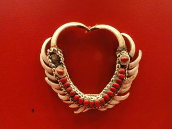 | Keywords: Ornament, boar tusks, nassa shells, conus shell rings, red seeds, Papua New Guinea, 1916 - Staatlichen Museums für Völkerkunde München - DSC08320.JPG Exhibit in the Oceanic collection of the Staatlichen Museums für Völkerkunde München Maximilianstraße 42 Munich Germany Ornament made of boar tusks nassa shells conus shell rings red seeds Papua New Guinea 1916 I took this photograph 2011-05-03 03 56 03 Daderot Public domain Dauerausstellung Ozeanien des Staatlichen Museums für Völkerkunde München |