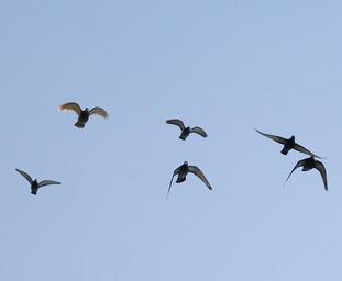 Keywords: Orsopapera-colombi 001.JPG Rock pigeons Columba livia Piccioni viaggiatori Columba livia in volo own Orso della campagna e Papera dello stagno 2009-02-28 Pigeons in flight Flocks of birds in flight Bird textures