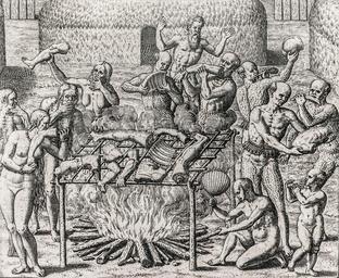 Keywords: Os Filhos de Pindorama. Cannibalism in Brazil in 1557.jpg Assessments 1 Cannibalism in Brazil in 1557 as described by Hans Staden b around 1525 “ Wolfhagen 1579 Gravure de Théodore de Bry 1562 Gravura retratando as práticas de canibalismo no Brasil Obras com esse tema ilustram o livro de De Bry impresso na Alemanha em 1596 es Dibujo retratando las prácticas de canibalismo en Brasil Obras como esta son ilustradas en el libro de Theodor de Bry impreso en Alemania en 1596 Os Filhos de Pindorama en The Sons of Pindorama < 1562 Gravure private collection RÃo de Janeiro Brazil Own Photography by The Photographer Other versions <gallery>Cannibals 23232 jpg</gallery> PD-Brazil-media PD-old-100 Meals in art Human cannibalism in art History of Brazil 1500-1808 Colony 1557 Books by Hans Staden Theodor de Bry Quality images by The Photographer Featured pictures of art Featured pictures of people Featured pictures of São Paulo Featured pictures by User The Photographer QualityImage |