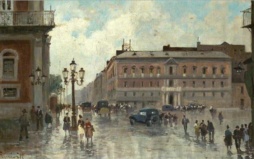 | Keywords: Oscar Ricciardi Platz.jpg  Italienischer Platz <br> laut Auktionshaus Teilansicht von Neapel mit dem Palazzo Reale oil on canvas 23 x 36 5 cm signature http //www auktion-bergmann de Auktionshaus Bergmann by 1935 Oscar Ricciardi PD-old Images from Auktionshaus Bergmann Oscar Ricciardi Naples in art Historical images of piazza del Plebiscito Naples Palazzo Salerno Napoli  |
