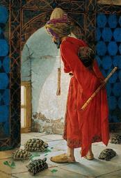 | Keywords: Osman Hamdi Bey 001 cropped.jpg Tortoise Trainer; oil on canvas 221 5 x 120 cm According to modern researchers Bettelheim Matthew P and Ertan Taskavak 2006 The Tortoise and the Tulip - Testudo graeca ibera and Osman Hamdi's The Tortoise Trainer Bibliotheca Herpetologica 6 2 pp 11-15 the animals portrayed are Testudo graeca ibera a variety of the Spur-thighed Tortoise Kaplumbağa Terbiyecisi Д есси овщик че епах Institution Pera Museum 1906 Creator Osman Hamdi Bey PD-old-100 <gallery> File Osman Hamdi Bey - The Tortoise Trainer jpg First version 1906 File Kaplumbağa Terbiyecisi vers2 jpg Second version 1907 </gallery> Osman Hamdi Bey 001 jpg Paintings in the Pera Museum Paintings by Osman Hamdi Bey Tortoises in art Testudo graeca Uploads by User Cretanforever 1906 paintings Animal training Dervishes in art Ney Drums in art |