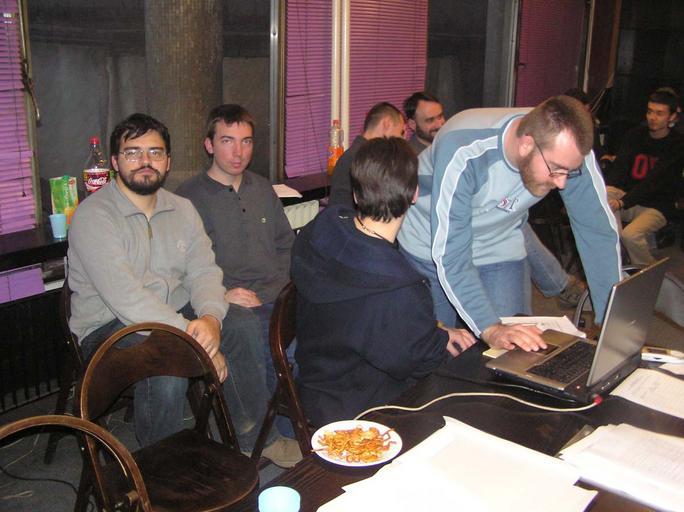 Keywords: Osnivacka skupstina 6.JPG Serbian meetup picture The founding assembly for Wikimedia Serbia Montenegro 2005-12-03 own assumed Dungodung Wikimedian meetups in Serbia 2005 Men using computers People with Coca-Cola bottles People using computers in the 2000s |