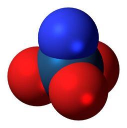 Keywords: OsNO3 3D spacefill.png Space-filling model of the Metal nitrido complex anion with the forumla OsNO3<sup>-</sup> Colour code F51E1E Oxygen O red<br> 3C50FA Nitrogen N blue<br> 206890 Osmium Os dark blue<br> 2011-07-03 own DS Visualizer Jynto talk Ball-and-stick version cc-zero Images by Jynto Osmium complexes oxido complexes nitrido complexes complex anions |