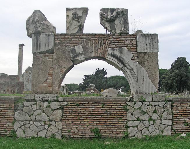 | Keywords: OstiaAnticaBasilicaRicostruzioneArcoFacciata.jpg en Ostia Antica archeological site Basilica one of the arches reconstruction it Ostia antica sito archeologico Basilica uno degli archi della facciata sulla piazza del Foro ricostruito own MM 2009-11 Basilica civile Ostia Antica Ancient Roman archivolts Ancient Roman Corinthian capitals in Italy Ostia |