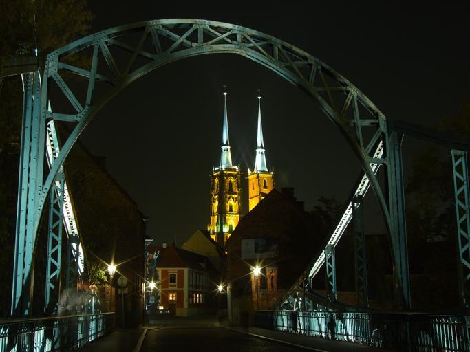 Keywords: ostrów tumski wrocław bridge city architecture monument poland the cathedral evening