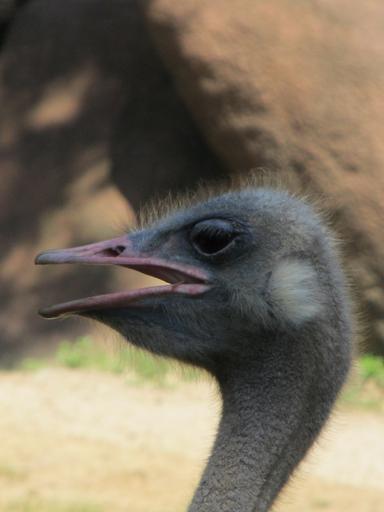 Keywords: ostrich bird head beak neck flightless feather eyes animal close up enclosure zoo profile portrait