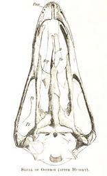 | Keywords: OstrichSkull.jpg Skull of Ostrich captions Pmx premaxilla ; Mxp maxillo-palatine ; Va vomer ; Pl palatine ; Pt pterygoid R rostrum � The Structure and Classification of Birds 1898 Frank E Beddard 1898 Frank E Beddard pd-old PD-old Ostriches in art Struthio camelus skulls |