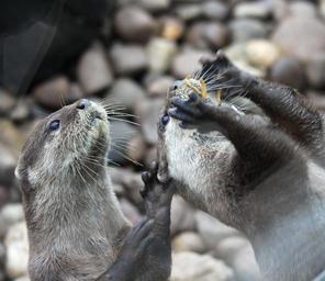 Keywords: otter cute feed feeding animal nature wildlife mammal fur water whiskers pair funny
