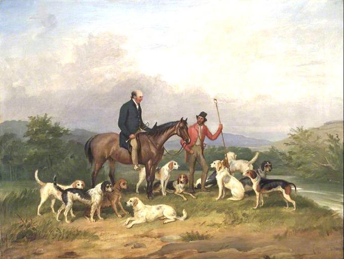 | Keywords: Otter Hunt.png artwork langswitch John Lloyd 1771 1829 on horseback is shown with George Thomas 1786 1859 who holds a horn and otter hunting pole George Thomas is best known for his mock heroic poems on local events including The Otter Hunt and the Death of a Roman a Well-Known Hound published in 1817 The poem describes otter hunting in the Camlad a tributary which flows into the Severn Lloyd lived at the Court Abermule Frazer Thomas George Thomas of Llandyssil 1786 1859 The Montgomeryshire Collectons Vol 97 2009 101-121 ca 1817 http //www bbc co uk/arts/yourpaintings/paintings/john-lloyd-17711829-and-george-thomas-17861859 National Museum of Wales /Amgueddfa Cymru Thomas Weaver other versions Custom license marker 2015 01 03 PD-old-100 Uploaded with UploadWizard Llandyssil Paintings in National Museum Cardiff Thomas Weaver Horses in art of the United Kingdom Hunting by horse in art Hunting in the United Kingdom Paintings of male hunters with dogs Hunting dogs in art |