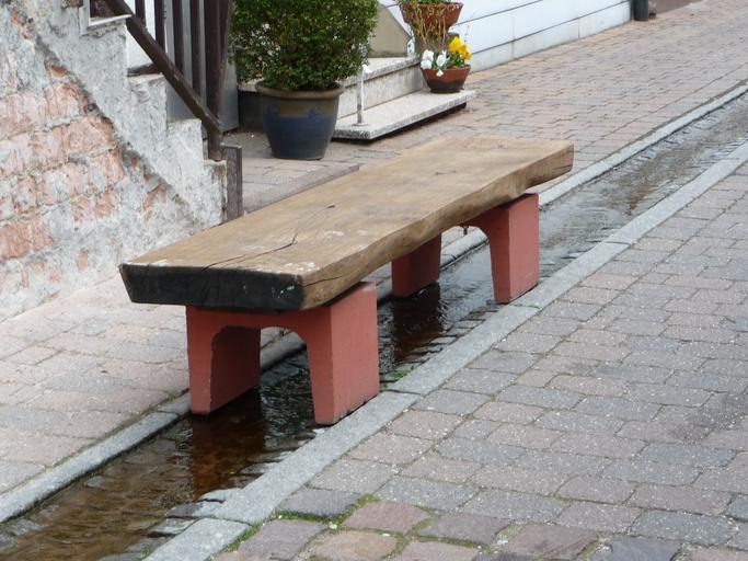 Keywords: Otterberg 01.jpg en Gosse und Sitzbank in Otterberg own Immanuel Giel 2011-04-17 Cc-zero Gutters Wooden outdoor benches Street benches Benches in Germany Otterberg