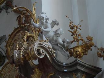 Keywords: Ottobeuren basilika ottobeuren altar of st nicholas of myra 008.JPG Decorations above the Altar of Saint Nicholas of Myra at Ottobeuren Abbey Ottobeuren Germany Own Mattana 2009-04-18 Images by Mattana-Ottobeuren Germany Altar of Saint Nicholas of Myra in Basilika Ottobeuren Baroque statues in Basilika Ottobeuren |