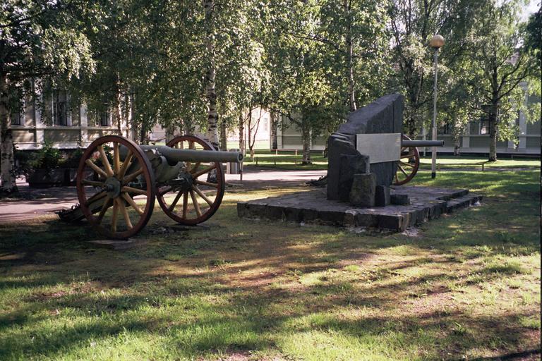 Keywords: Oulu barracks July2008 001.jpg en The old barrack area in the Intiö district of Oulu Finland Most of the old buildings in the area if not all were built in the late 1800s In 2008 they are no longer in military use The field guns seen in the photo are probably 90 mm De Bange cannons fi Oulun vanhaa varuskunta-aluetta Intiössä Suurin osa alueen vanhoista rakennuksista ellei kaikki on rakennettu 1800-luvun loppupuolella Nykyään alue ei ole enää Puolustusvoimain käytössä Kuvassa näkyvät vanhat kenttätykit ovat todennäköisesti mallia 90 K 77 own Methem Mikko J Putkonen 2008-07 2008 in Oulu Artillery of Finland De Bange 90mm cannon July 2008 in Finland Oulu Sharpshooter Battalion Barracks |