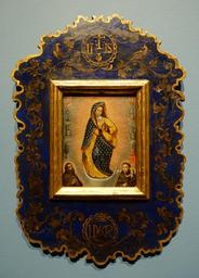 Keywords: Our Lady of Miracles, artist unknown, Cuzco, Peru, 17th or 18th century, oil on copper with gold - Blanton Museum of Art - Austin, Texas - DSC08098.jpg en Exhibit in the Blanton Museum of Art - Austin Texas USA This work is old enough so that it is in the public domain 2015-11-15 16 33 29 own Daderot other versions PD-old-100 cc-zero Cuzco School paintings in the Blanton Museum of Art |