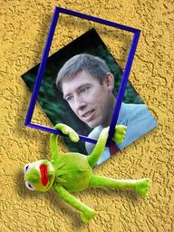Keywords: out of the ordinary kermit frog image man funny anders unusual untypical picture frame cute sweet plush fig stuffed animal toys children animal fun