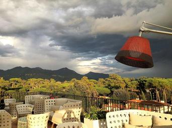 Keywords: outlook terrace hotel bar lounge dusk forward gewitterstimmung evening cloud cover sky landscape thunderstorm cloud formation threatening mood