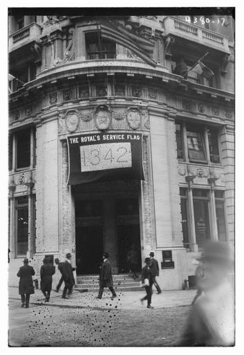 | Keywords: (Outside of building -- the Royal's Service flag) (LOC) (22889239674).jpg Bain News Service publisher Outside of building -- the Royal's Service flag between ca 1915 and ca 1920 1 negative glass ; 5 x 7 in or smaller Notes Title from data provided by the Bain News Service on the negative Forms part of George Grantham Bain Collection Library of Congress Format Glass negatives Rights Info No known restrictions on publication Repository Library of Congress Prints and Photographs Division Washington D C 20540 USA http //hdl loc gov/loc pnp/pp print hdl loc gov/loc pnp/pp print General information about the Bain Collection is available at http //hdl loc gov/loc pnp/pp ggbain hdl loc gov/loc pnp/pp ggbain Higher resolution image is available Persistent URL http //hdl loc gov/loc pnp/ggbain 25587 hdl loc gov/loc pnp/ggbain 25587 Call Number LC-B2- 4380-17 https //www flickr com/photos/library_of_congress/22889239674/ Outside of building -- the Royal's Service flag LOC LOC-image ggbain 25587 https //www flickr com/people/8623220 N02 The Library of Congress http //www loc gov/rr/print/195_copr html noknown The Library of Congress Flickr Commons PD-Bain The Library of Congress https //flickr com/photos/8623220 N02/22889239674 2016-09-08 06 53 42 pd Uncategorized 2016 December 20 |