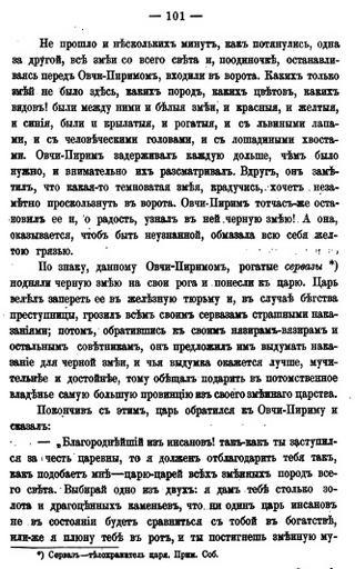 Keywords: Ovchu Pirim 101.jpg en Part of the Ovchu Pirim fairy tale Сбо ник мате иалов для описания местностей и племен Кавказа Выпуск седьмой Отдел II Ст 101 Azerbaijani folk fairy tale written by Alexander Kalashev 1889 PD-old Ovchu Pirim