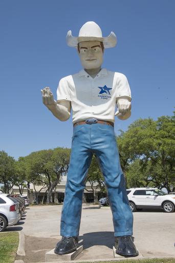 | Keywords: Oversized cowpoke outside a car dealership in Boerne, Texas LCCN2014632916.tif 1 photograph digital tiff file color Notes Such figures were adapted from the idea of Muffler Men large molded fiberglass sculptures placed as advertising icons roadside attractions or for decorative purposes predominantly in the United States The first figure was a Paul Bunyan character designed to hold an axe Derivatives of that figure were widely used to hold full-sized car mufflers tires or other items promoting various roadside businesses ; Title date and keywords based on information provided by the photographer ; Gift; The Lyda Hill Foundation; 2014; DLC/PP-2014 054 ; Forms part of Lyda Hill Texas Collection of Photographs in Carol M Highsmith's America Project in the Carol M Highsmith Archive ; Credit line The Lyda Hill Texas Collection of Photographs in Carol M Highsmith's America Project Library of Congress Prints and Photographs Division 2014 Creator Carol M Highsmith Library of Congress Catalog http //lccn loc gov/2014632916 Image download https //cdn loc gov/master/pnp/highsm/28700/28716a tif Original url http //hdl loc gov/loc pnp/highsm 28716 No known restrictions on publication LOC-image highsm 28716 29 45 2448 0 N 98 42 2141 0 W alt 440_source exif_heading 313 66 PD-Highsmith Images uploaded by Fæ Lyda Hill Texas Collection of Photographs in Carol M Highsmith's America Project in the Carol M Highsmith Archive The Lyda Hill Texas Collection of Photographs in Carol M Highsmith's America Project Library of Congress Prints and Photographs Division Photographs by Carol M Highsmith |