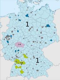 | Keywords: Overview Maps of Municipalities in Germany.svg à bersicht über den Einbau der Gemeindelagepläne in Deutschland siehe de Wikipedia Projekt Landkreiskarten/Statistik own <br/> district borders based upon File Landkreise 08-2008 svg by NordNordWest 2008-09 Benutzer TUBS Released into the public domain by the author Other fields A + Maps Locator maps of municipalities in multiple German states | ||||