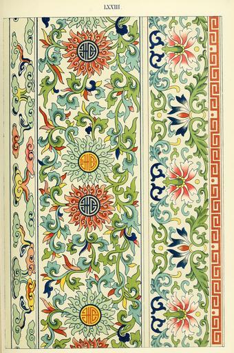 | Keywords: Owen Jones - Examples of Chinese Ornament - 1867 - plate 073.png 072 LXXIII 73 074 From painted china Vases The upper border on this plate is a curious specimen of a continuous stem running round the vase and throwing off a light and a dark flower side-by-side; in the centre of each flower is the Chinese emblem of the labyrinth The symbol in the centre of each flower does not look like a labyrinth ; isn ™t it just a stylized Shou character or something similar PD-old-100-1923 Porcelain of China Vases of China Floral designs in China Floral patterns 寿 |