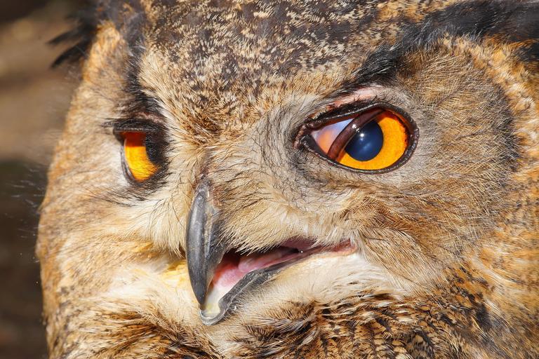 Keywords: owl eagle owl bird raptor bird of prey lighted eyes eurasian eagle european owl nocturnal plumage view close eyes animal portrait alive nature bill feather