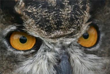 Keywords: owl great horned eyes predator nature wildlife beak feather bird yellow stare nocturnal head wise close up usfws