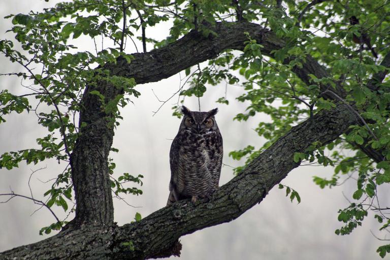 Keywords: owl great horned hoot barn tree