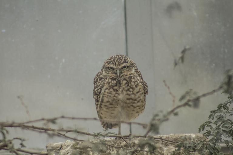 Keywords: owl zoo burrowing angry bird grumpy animal nature watching beak claws eyes little owl looking at camera