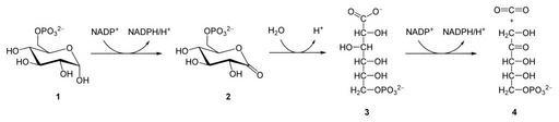 Keywords: Ox Pentose phosphate pathway.svg en Oxidative phase of the pentose phosphate pathway de oxidativer Teil des Pentosephosphatweges own Yikrazuul 2009-04-26 Pentose phosphate pathway
