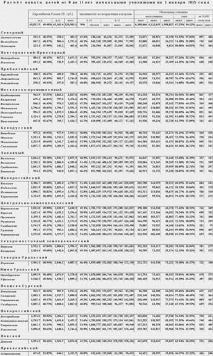 Keywords: OXBAT 1915.png Охват детей в воз асте 8-11 лет начальным об азованием по мате иалам Статистического ежегодника ЦСК ВД России за 1915 год Пг 1916 PD-RusEmpire Education in the Russian Empire Ministry of Internal Affairs Russia