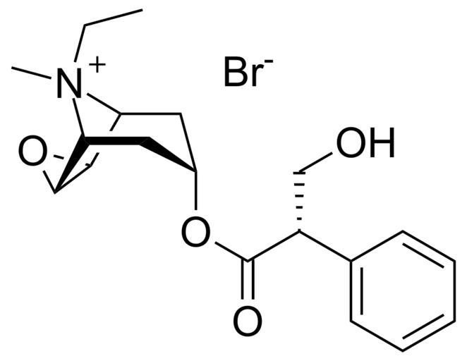 Keywords: Oxitropium bromide.svg Chemical structure of oxitropium bromide N-Ethylscopolammonium bromide Hyoscine ethobromide; N-Ethylnorscopolamine methyl bromide; Oxivent; Oxytropium bromide; Scopolamine ethobromide; Tersigan; Tersigat; Ventilat Own 14 22 8 September 2011 UTC Ed Edgar181 200px Tropanes Epoxides Quaternary ammonium compounds Bronchodilators Anticholinergics |