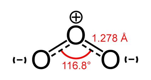 Keywords: Ozone-1,3-dipole.png Structural formula of the ozone molecule O<sub>3</sub> O-O bond length of 127 8 pm i e 1 278 Å and O-O-O bond angle of 116 8° determined by microwave spectroscopy and taken from cite book N N Greenwood and A Earnshaw 1997 Chemistry of the Elements second Butterworth-Heinemann 0-08-037941-9 607-608 Image generated in http //www cambridgesoft com/software/overview aspx ChemDraw own 2006-04-06 Ben Mills Benjah-bmm27 Ozone_molecule svg Ozone |