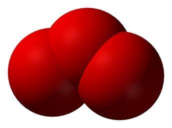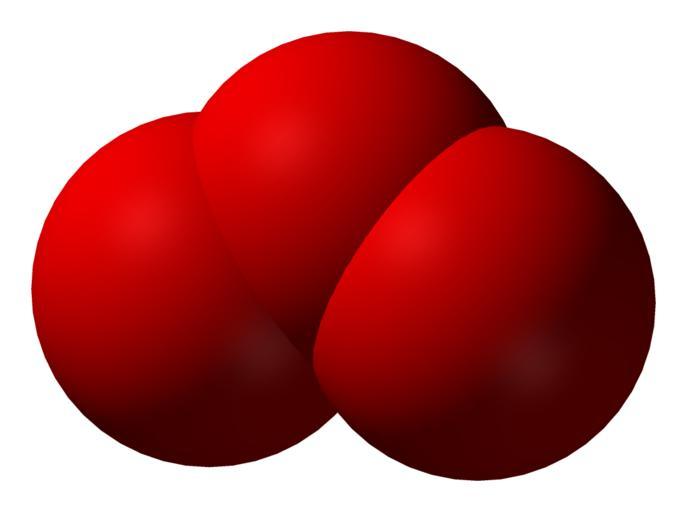 Keywords: Ozone-CRC-MW-3D-vdW.png Space-filling model of the ozone molecule O<sub>3</sub> Structure determined by microwave spectroscopy from http //www hbcpnetbase com/ CRC Handbook 88<sup>th</sup> edition Image generated in http //accelrys com/products/discovery-studio/visualization/discovery-studio-visualizer html Accelrys DS Visualizer own 2009-05-27 Ben Mills Benjah-bmm27 Images by Ben Mills Ozone |