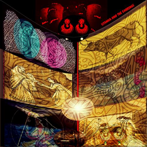 | Keywords: mahabharata adi-parva-i adiparvai utanka snake Painting 6 " October 26, 2016 GOD'S LIVING BIBLE ---- THE THIRD TESTAMENT ----- RESEARCH LIBRARY © HINDUISM VATSA SRIDATTA'S SELECTIONS FROM THE MAHABHARATA Books 1 THE STORY OF UTANKA AND THE EARRINGS The Adi-Parva-Paushya Parva - Section III-Pages 37-44 of Krishna-Dwaipayana Vyasa *** “God Speaking To Anne Terri and Working With Vatsa Sridatta Through The Holy Spirit: Vatsa Sridatta Said: Divine Anne should paint from the Paushya Parva-Section III today. ' HARI OM ' AMEN" “God / Brahman Speaking To Anne Terri Through The Holy Spirit: The stories of The Mahabharata, are intricate, especially the ones, within The Adi-Parva-Paushya Parva. Today, as per Vatsa Sridatta's request, Anne is painting from the story of Utanka, who underwent a quest to obtain a pair of Earrings. To begin you need to know what We call back story. In the Adi-Parva-Paushya Parva, there are many stories told, and after the one of Janamejaya, the son of Parikshit, meeting with a Rishi of fame, Srutasrava who had a son named Somasrava, who he hoped to attain as his Purohita, .... we travel forward to another story told of a Rishi, named Ayoda-Dhaumya who had three disciples, Upamanyu, Aruni, and Veda. In this tale the three disciples underwent tests by Ayoda-Dhauma, as to their Devotion and such. Our Focus today, will be on the third disciple - Veda- and his own disciple Utanka's tests and the quest for the Earrings. Now, I could Dictate to Anne this entire story - but instead - I want her to point you to the link to this section, where you may read it for yourself. See Pages marked as end of 37 to 44. glbresearch.proboards.com/post/7223 She will paint from key points of the story for you to enjoy, and uses My Personal abridged version below for references. ******** Key Points: 1. Veda has served well his Preceptor, and then takes on three pupils of his own. He knows the hardships of being a student/disciple, and is kind and asks little work from them. However, later he requests his Disciple Utanka to serve him by watching over his household, as he needs to leave the house to go on business related to a sacrifice. *** 'Utanka', said he, 'whatsoever should have to be done in my house, let it be done by thee without neglect.' *** Untanka being diligent does his best, but the women ask of him to take care of their needs in Veda's absence, for they want to be fruitful. He refuses this request for it is not proper. 2. Veda returns. He is pleased and offers Utanka anything he wants for having served well. He allows Utanka to leave, but Utanka chooses instead to please Veda, telling him to command him of his desires. Instead he send him to his wife, who is also the mistress of the house. He is to ask her what he should bring in honor of all the instruction, that Veda has given to him. *** She says: Go unto King Paushya and beg of him the pair of ear-rings worn by his Queen, and bring them hither. The fourth day hence is a sacred day when I wish to appear before the Brahmanas (who may dine at my house) decked with these ear-rings. Then accomplish this, O Utanka! If thou shouldst succeed, good fortune shall attend thee; if not, what good canst thou expect?' *** 3. Utanka journeys to King Pausha and meets on the road a huge bull and a man who is uncommon in stature. The man poses a strange request, that he eat the dung of the bull. Utanka refuses but relents when told his master had done so. He did this, drank of the bull's urine and washes his hand and mouth. 4. He arrives at the palace. He asks King Paushya: *** 'I came to beg of thee a pair of ear-rings as a present to my preceptor. It behoveth thee to give me the ear-rings worn by the Queen.' *** The King sends him to the women's apartments, where the Queen is, but he could not discover which one was the Queen. He returns to the King, who tells him his wife is chaste and will not be seen by anyone one impure or defiled. Utanka washes again, thoroughly. He returns to the women's area and saw the Queen. Addressing her, he asks for the ear-rings, which she gave to him with a warning.. *** 'These ear-rings are very much sought after by Takshaka, the King of the serpents. Therefore shouldst thou carry them with the greatest care.' *** Utanka tells her that ... *** 'Takshaka Chief of the serpents, is not able to overtake me.' *** He thanks the King, who asks him to stay to perform a sradddha. The food brought to be served is cold and unclean. He challenges the King about this and he says.. 'Thou givest me food that is unclean, therefore shalt thou lose thy sight.' The King refuses to believe the food not suitable and curses him in return. Yet he looks again and finds it unclean, and asks pardon of Utanka, yet cannot revoke the curse, knowing his heart is hardened... *** 'But the food truly unclean, thy curse cannot affect me. Of this I am sure.' And Utanka having said this departed with the ear-rings. *** 5. Utanka sees a beggar on the road coming in and out of view. He places the ear-rings on the ground to go get water. The beggar takes the ear-rings, while Utanka is doing his ablutions in water. He having bowed down to the gods pursued quickly, and finds the beggar is actually Takshaka the Serpent in disguise, who has gone back to his region. Utanka remembers the Queen's warning. He attempts to dig a hole with a stick to get to the serpent. 6. Indra sends his thunder-bolt-Vajra) to help him, and the stick becomes powerful. The hole now larger, Utanka follows, and sees the region of the serpents, and it's magnificence. He recites Slokas to Glorify the serpents, one being to obtain the ear-rings from Takshaka, who formerly dwelt in Kurukshetra and the forest of Khandava. Still he does not succeed in getting the ear-rings. 7. Utanka sees two women at a loom weaving, black and white threads. He sees a wheel with twelve spokes, turned by six boys, and a man with a handsome horse. He speaks to them with mantras, describng