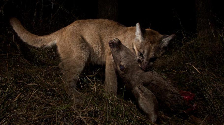 | Keywords: #mountainlion mountainlion carnivore #wildlife wildlife kitten p13 p28 p30 animals animalsandinsects monochrome outdoor animal Our remote camera recently captured P-13 and her 10-month-old kittens, P-28 and P-30, on a kill in Malibu Creek State Park. The three of them spent two nights sharing their meal of mule deer. After investigating more than 400+ kill sites during our study, we found that mule deer accounted for 95% of mountain lion kills. Photo credit: National Park Service Our remote camera recently captured P-13 and her 10-month-old kittens, P-28 and P-30, on a kill in Malibu Creek State Park. The three of them spent two nights sharing their meal of mule deer. After investigating more than 400+ kill sites during our study, we found that mule deer accounted for 95% of mountain lion kills. Photo credit: National Park Service |