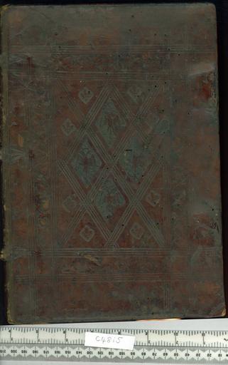 Keywords: P. Terentij aphri comicoru¯ elegantissimi Comedie - Upper cover (c48i5).jpg Style Single tools design; Caption Upper cover; Colour Brown; Edge Unspecified exhibition history Decorative Technique Tooled in blind; Cover Material Calf Wooden boards Traces of 2 clasps Ink ms notes Rebacked Modern endleaves object history Text 1504; Paris; Unspecified object type Cc-zero place of creation Binding England place of discovery Unspecified British Library image http //www bl uk/catalogues/bookbindings/LargeImage aspx RecordId 020-000010588 ImageId ImageId 44899 Copyright BL P Terentij aphri comicoru¯ elegantissimi Comedie Uploaded with GWToolset P Terentij aphri comicoru¯ elegantissimi Comedie - Upper cover c48i5 http //www webarchive org uk/bldatasets/bindings/11501_4 jpg Bookbinding 16th-century bookbinding British Library Bookbindings |