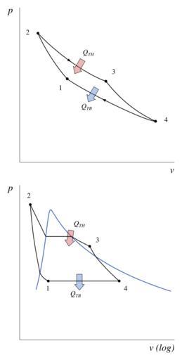 | Keywords: P-v diagrams of Carnot engine cycle.svg en Pressure volume diagrams of a Carnot cycle configured as an engine The shape of the curve is different when the working fluid is a perfect gas top or a liquid/vapor bottom On a temperature-entropy diagram both these curves would be identical 2013 own Olivier Cleynen other versions cc-zero Pressure-volume diagrams SVG physics Uploaded with UploadWizard Carnot cycle | ||||