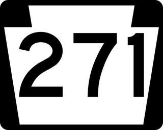 | Keywords: PA-271.svg 750 mm by 600 mm 30 in by 24 in Pennsylvania shield made to the specifications of the Manual on Uniform Traffic Control Devices MUTCD 2003 Edition sign M1-5 Uses the Roadgeek 2005 fonts United States law does not permit the copyrighting of typeface designs and the fonts are meant to be copies of a U S Government-produced work anyway own 2006-07-23 TwinsMetsFan Public Domain Pennsylvania Route shields 271 271 number Pennsylvania Route 271 | ||||