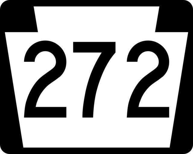 | Keywords: PA-272.svg 750 mm by 600 mm 30 in by 24 in Pennsylvania shield made to the specifications of the Manual on Uniform Traffic Control Devices MUTCD 2003 Edition sign M1-5 Uses the Roadgeek 2005 fonts United States law does not permit the copyrighting of typeface designs and the fonts are meant to be copies of a U S Government-produced work anyway Own 2006-11-13 TwinsMetsFan Public Domain Pennsylvania Route shields 272 Pennsylvania Route 272 | ||||
