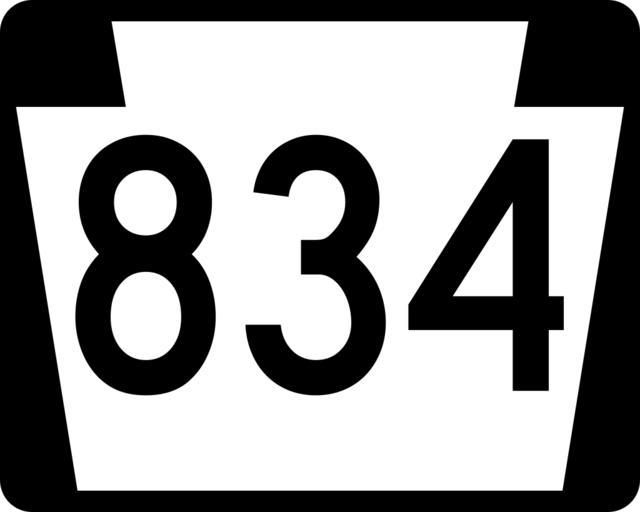 | Keywords: PA-834.svg 750 mm by 600 mm 30 in by 24 in Pennsylvania shield made to the specifications of the Manual on Uniform Traffic Control Devices MUTCD 2003 Edition sign M1-5 Uses the Roadgeek 2005 fonts United States law does not permit the copyrighting of typeface designs and the fonts are meant to be copies of a U S Government-produced work anyway Own 2006-11-28 TwinsMetsFan Public Domain Pennsylvania Route shields 834 | ||||