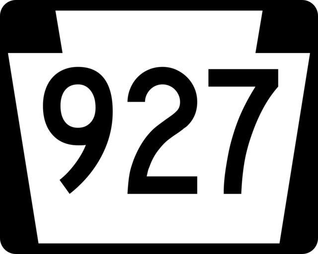 Keywords: PA-927.svg 750 mm by 600 mm 30 in by 24 in Pennsylvania shield made to the specifications of the Manual on Uniform Traffic Control Devices MUTCD 2003 Edition sign M1-5 Uses the Roadgeek 2005 fonts United States law does not permit the copyrighting of typeface designs and the fonts are meant to be copies of a U S Government-produced work anyway Own 2006-11-27 TwinsMetsFan Public Domain Pennsylvania Route shields 927 |