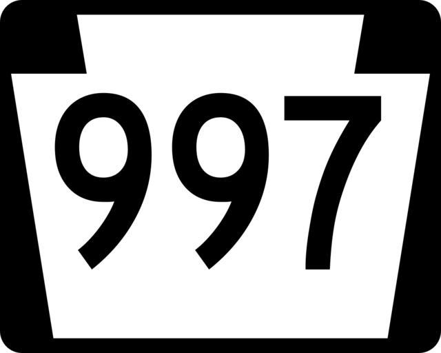 | Keywords: PA-997.svg 750 mm by 600 mm 30 in by 24 in Pennsylvania shield made to the specifications of the Manual on Uniform Traffic Control Devices MUTCD 2003 Edition sign M1-5 Uses the Roadgeek 2005 fonts United States law does not permit the copyrighting of typeface designs and the fonts are meant to be copies of a U S Government-produced work anyway Own 2006-11-04 Vishwin60 Public domain 997 number Pennsylvania Route shields 997 | ||||