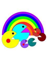 Keywords: pac man video game character rainbow colors