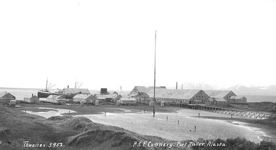 | Keywords: Pacific American Fisheries cannery at Port Moller, ca 1912 (THWAITES 396).jpeg check categories 27 October 2016 2 Photograph Creator John E Thwaites Caption on image P A F Cannery Port Moller Alaska PH Coll 247 903<br/>Port Moller is a village in southwest Alaska It is located on the Alaska Peninsula at the entrance of Port Moller Inlet 20 mi long of Bristol Bay on the Bering Sea Primary industries are fishing and fish canning Subjects LCTGM Pacific American Fisheries Inc --Facilities--Alaska--Port Moller; Fishing boats--Alaska--Port Moller Subjects LCSH Salmon canneries--Alaska--Port Moller; Salmon canning industry--Alaska--Port Moller depicted place United States--Alaska--Port Moller ca 1912 Institution University of Washington UWASH-THWAITES-source accession number thwaites 396 PD-old-auto-1923 1940 Information field Order Number THW388 Images from the John E Thwaites Photographs of Alaska Collection to check Fishing boats Salmon canneries |