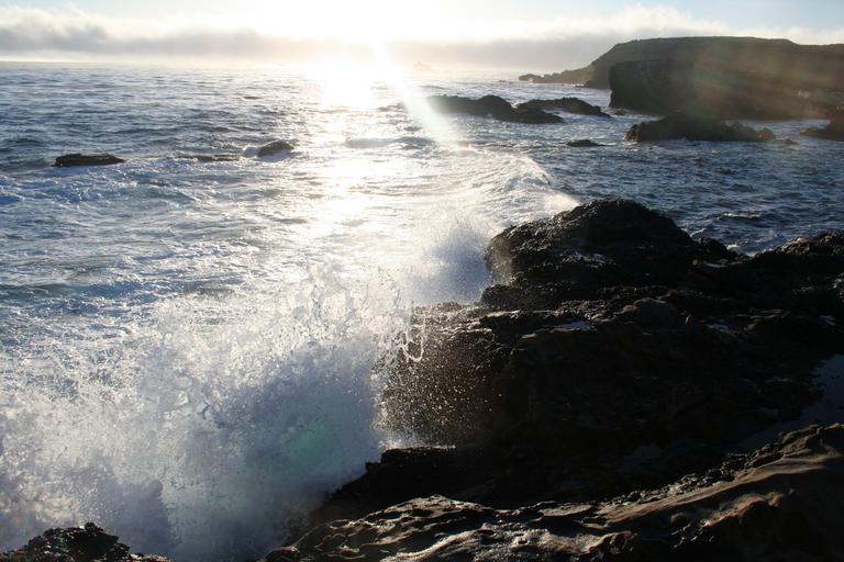 Keywords: pacific ocean crashing waves coast landscape coastline seascape shore sun sunset sunlight horizon outdoor environment coastal sea
