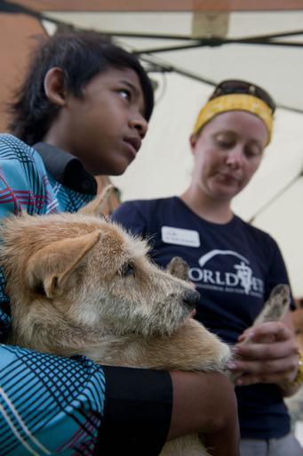 Keywords: Pacific Partnership 2012 120809-N-GL340-009.jpg en World Vets volunteer Helle Hydeskov inspects a local Cambodian boy's dog at a veterinary civic action project Aug 9 during Pacific Partnership 2012 VETCAPs help treat local animals for various diseases and parasites Now in its seventh year Pacific Partnership is a U S Pacific Fleet humanitarian and civic assistance mission comprised of U S military host and partner nations non-governmental organizations and international agencies designed to build stronger relationships and disaster response capabilities in the Asia-Pacific region U S Navy photo by Mass Communication Specialist 3rd Class Michael Feddersen 2012-08-09 Michael Feddersen https //www dvidshub net/image/645687 120809-N-GL340-009 2012-08-15 04 35 SIHANOUKVILLE KH PD-USGov-Military-Navy Pacific Partnership 2012 Images from DoD uploaded by Fæ |