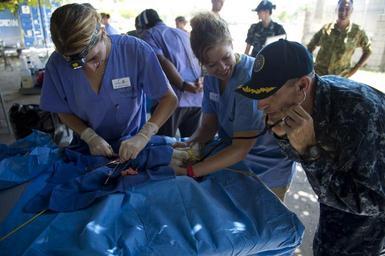 Keywords: Pacific Partnership 2013 130720-N-WD757-098.jpg en U S Navy Capt Wallace Lovely right the Pacific Partnership 2013 mission commander listens to a dog's heartbeat as World Vets volunteers perform a surgical procedure during a veterinary civic action project for Pacific Partnership 2013 in Tarawa Kiribati July 20 2013 Pacific Partnership is an annual deployment of forces designed to strengthen maritime and humanitarian partnerships during disaster relief operations while providing humanitarian medical dental and engineering assistance to nations of the Pacific U S Navy photo by Mass Communication Specialist 2nd Class Carlos M Vazquez II/Released 2013-07-20 Petty Officer 3rd Class Carlos Vazquez II https //www dvidshub net/image/984963 130720-N-WD757-098 2013-07-30 23 17 TARAWA KI PD-USGov-Military-Navy Pacific Partnership 2013 Images from DoD uploaded by Fæ |